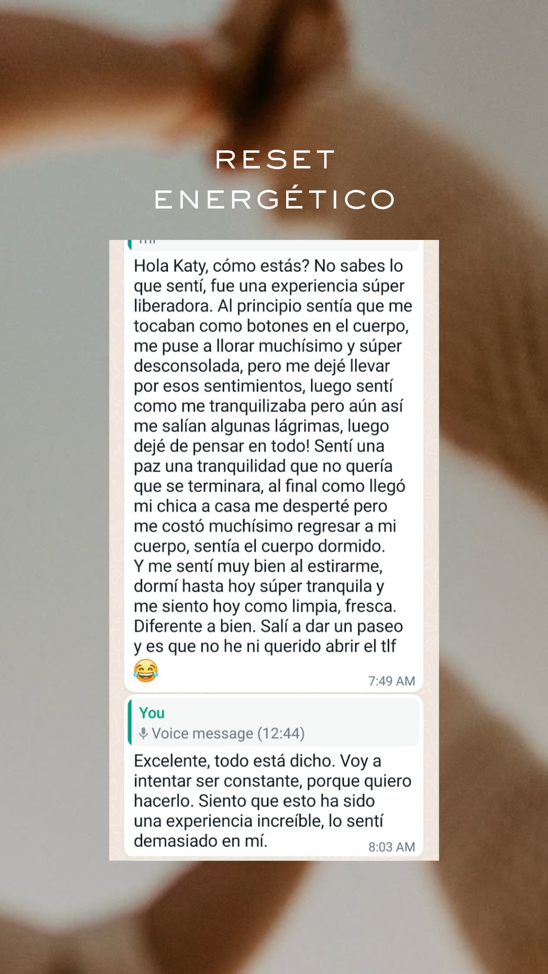 Una sesión que combina mis bestsellers: limpieza energética + alineación de chakras. Se enfoca en liberar emociones estancadas, cargas y bloqueos para que la persona pueda soltar, dejar ir, abrir camino y recuperar su paz interior. Ideal también para cumpleaños, mudanzas, etc y primeras terapias.